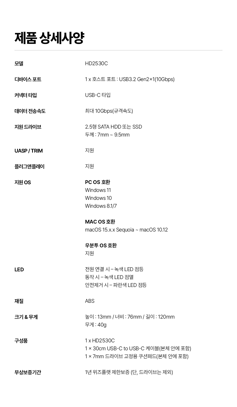 2.5" USB-C 3.2 Gen2x1 10Gbps 외장하드/SSD 케이스