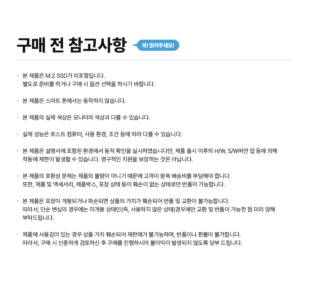 - 전자제품 등은 상품 개봉 후 상품가치가 하락하는 제품에 대해서는 설치/사용 후 반품이 불가합니다.