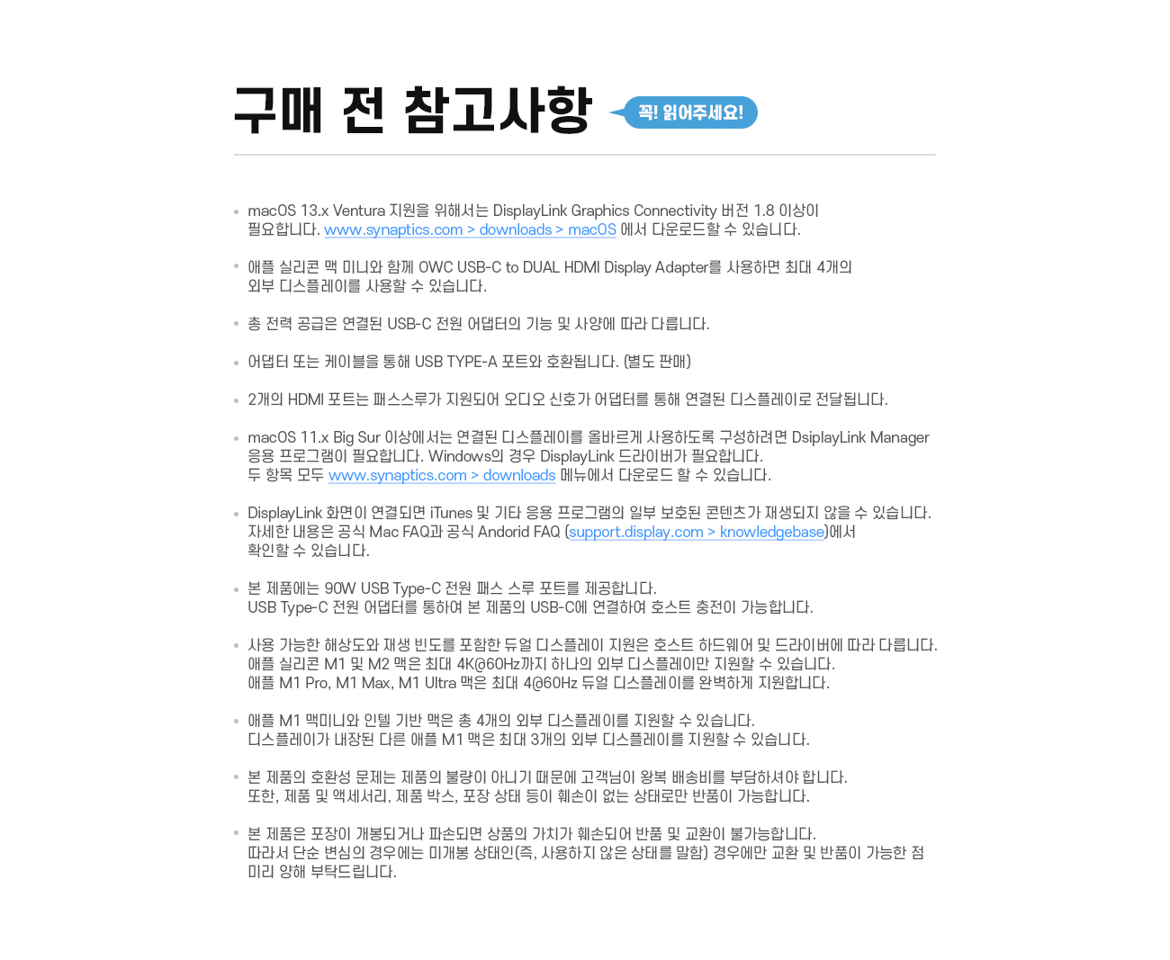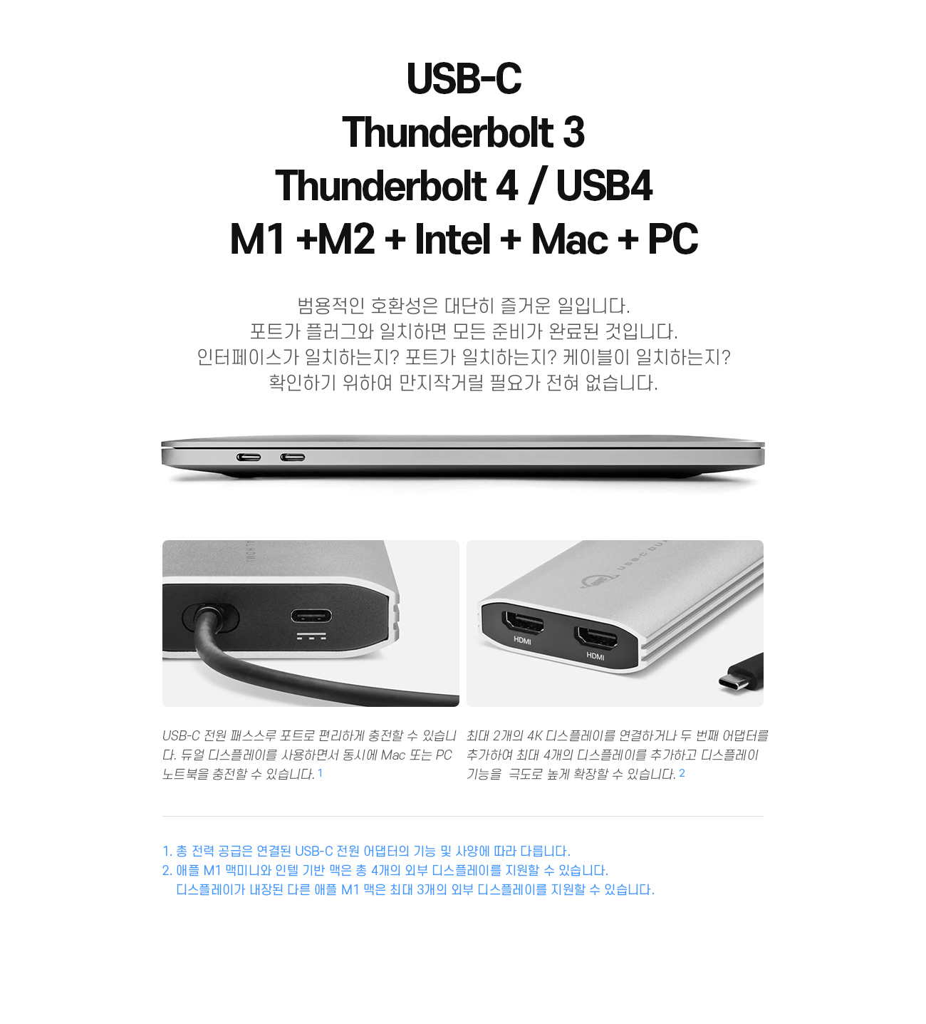 애플 M1/M2/M3/Intel 맥 모델 4K@60Hz 듀얼 디스플레이 윈도우 PC지원