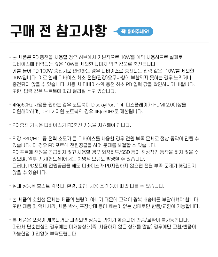 - 전자제품 등은 상품 개봉 후 상품가치가 하락하는 제품에 대해서는 설치/사용 후 반품이 불가합니다.